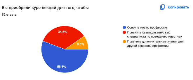Курс "Кабинет Зоопсихолога" отлично организован. Учиться мне было очень комфортно и все понравилось!